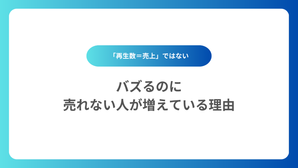 バズっているのに売れない違和感 最近よく見かけませんか? 再生数は何万回、何十万回。フォロワーも増えている。 でも、 「売れていない」 そんなアカウント。 一見すると成功しているように見えるのに、なぜか売上にはつながっていない。 ここに違和感が...